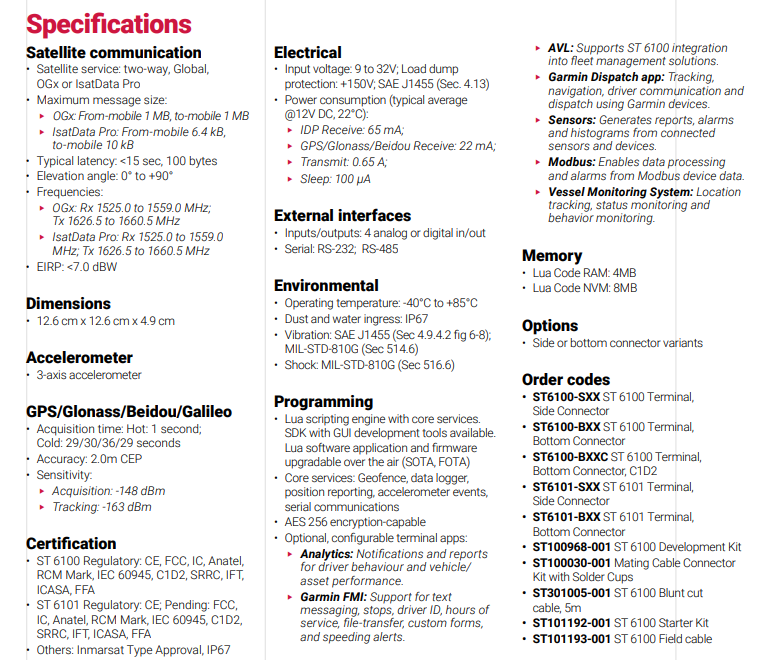 Global satellite connectivity  The ST 6100 communicates over the OGx and IDP satellite services for uninterrupted visibility of operations and field data virtually anywhere    |