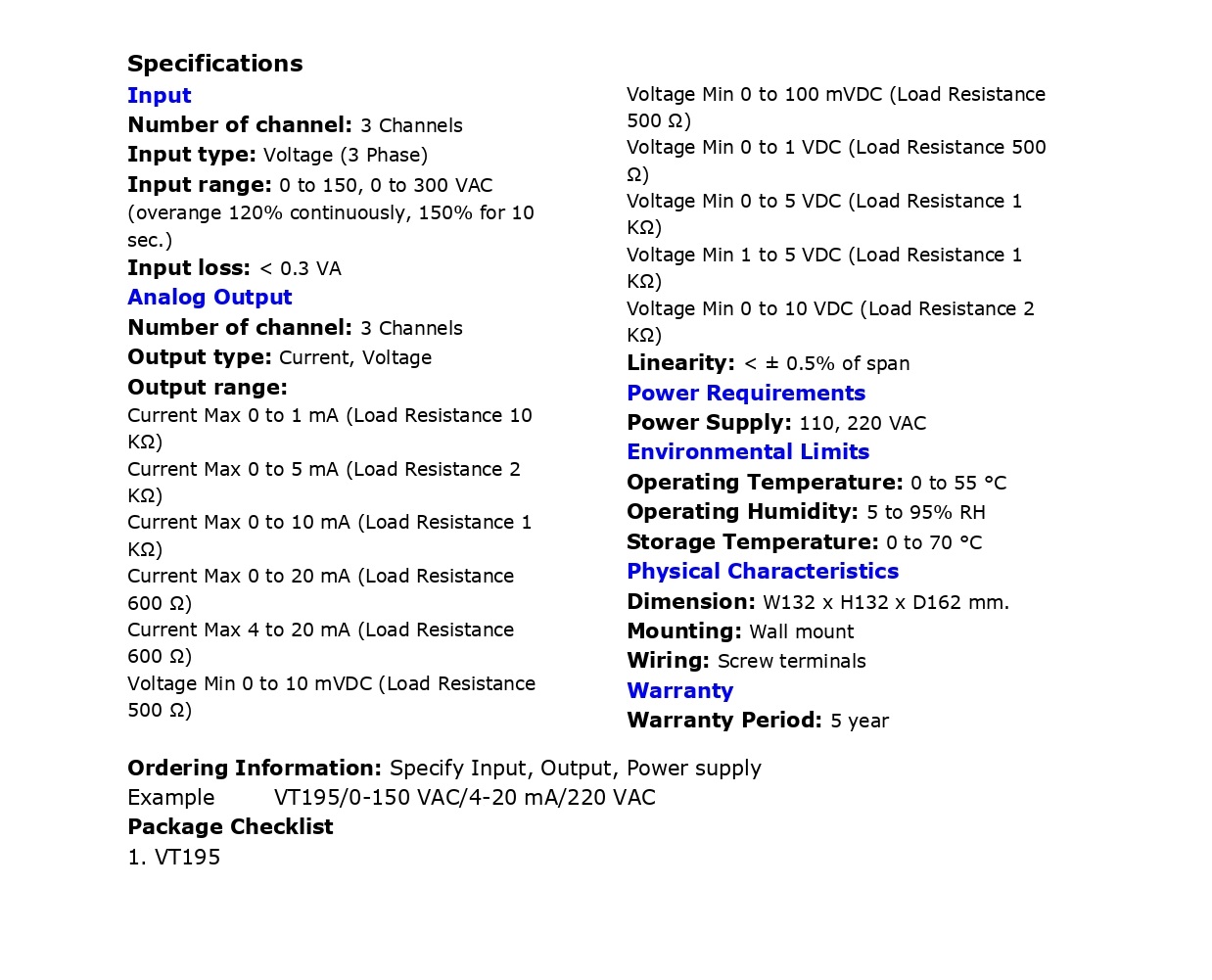 Voltage Relay VR195 เป็นอุปกรณ์ตรวจสอบแรงดันไฟฟ้า Single Phase ว่าสูงหรือต่ำกว่าค่าที่กำหนดไว้ ในสภาวะที่แรงดันไฟฟ้าอยู่ในระดับปกติ Relay จะ On และมี LED สีแดงติดสว่าง เมื่อแรงดันไฟฟ้า สูงกว่าค่า Over Voltage (Over) หรือต่ำกว่า ค่า Under Voltage (Under) ที่ตั้งไว้ LED สีแดงที่แสดงสภาวะ Over Voltage หรือ Under Voltage จะติดสว่าง และ Relay จะ Off แต่การ Off ของ Relay นี้ สามารถตั้งหน่วงเวลาได้ 0 - 10 วินาที โดยปรับที่ปุ่ม "DELAY" และเมื่อแรงดันไฟฟ้ากลับเข้าสู่ระดับปกติ Relay จะ On โดยปกติแล้ว ปุ่ม Over Voltage จะตั้งไว้ที่ 110% และปุ่ม Under Voltage จะตั้งไว้ที่ 90%