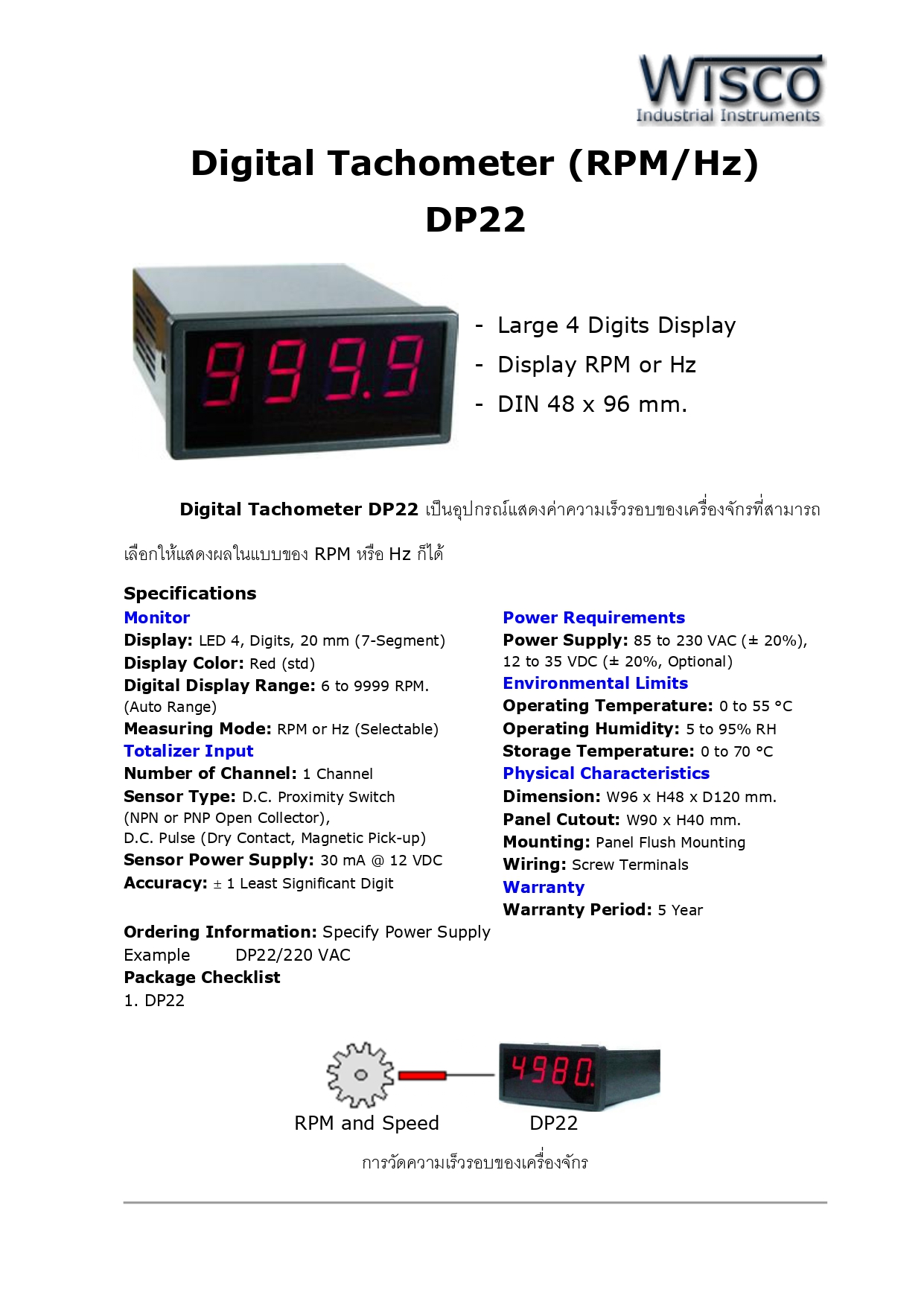 | ไฮไลท์ | Digital Tachometer DP22 เป็นอุปกรณ์แสดงค่าความเร็วรอบของเครื่องจักรที่สามารถเลือกให้แสดงผลในแบบของ RPM หรือ Hz ก็ได้ ______________________________________________________ Product : - Large 4 Digits Display - Display RPM or Hz - DIN 48 x 96 mm. ______________________________________________________ >>> หมายเหตุ : • ราคารวมภาษีมูลค่าเพิ่มแล้ว • กรณีมีสินค้าสต๊อกระยะจัดส่งสินค้าภายใน 4-7 วันทำการ • กรณีสินค้าหมดระยะจัดส่งสินค้าภายใน 3-4 สัปดาห์ • ฟรีค่าบริการจัดส่งสินค้า โดยบริษัทขนส่งเอกชน เช่น ปณ. ด่วน EMS, KEX Express, Flash Express เท่านั้น • สามารถเช็คสต๊อกสินค้าก่อนทำการสั่งซื้อได้ที่ @Line ID : kdnautomation • ลูกค้าตรวจสอบ Spec สินค้าก่อนทำการสั่งซื้อทุกครั้ง กรณีสั่งซื้อแล้วไม่รับเปลี่ยน-คืน ______________________________________________________ >>> ติดต่อสอบถามข้อมูลเพิ่มเติม : • Line Official : kdnautomation • E-Mail: kdnautomation@gmail.com • Tel : 082-550-3096, 02-023-3038 • Website : www.kdnautomation.co.th • เวลาทำการบริษัท วันจันทร์ - วันศุกร์ เวลา 08.00 - 17.00 น. ( หยุดวันนักขัตฤกษ์ ) ______________________________________________________ >>> บริการติดตั้ง : • ทางบริษัทจำหน่ายอุปกรณ์อิเล็กทรอนิกส์ ออกแบบ ติดตั้งและซ่อมแซม ปรับปรุงเครื่องจักรในโรงงานอุตสาหกรรม รวมถึงการให้บริการเขียนโปรแกรม และพัฒนาระบบควบคุมอัตโนมัติแบบครบวงจร ทั้งนี้ลูกค้าสามารถส่งรายละเอียด มาได้ที่ E-mail : kdnautomation@gmail.com เพื่อประเมินราคา |