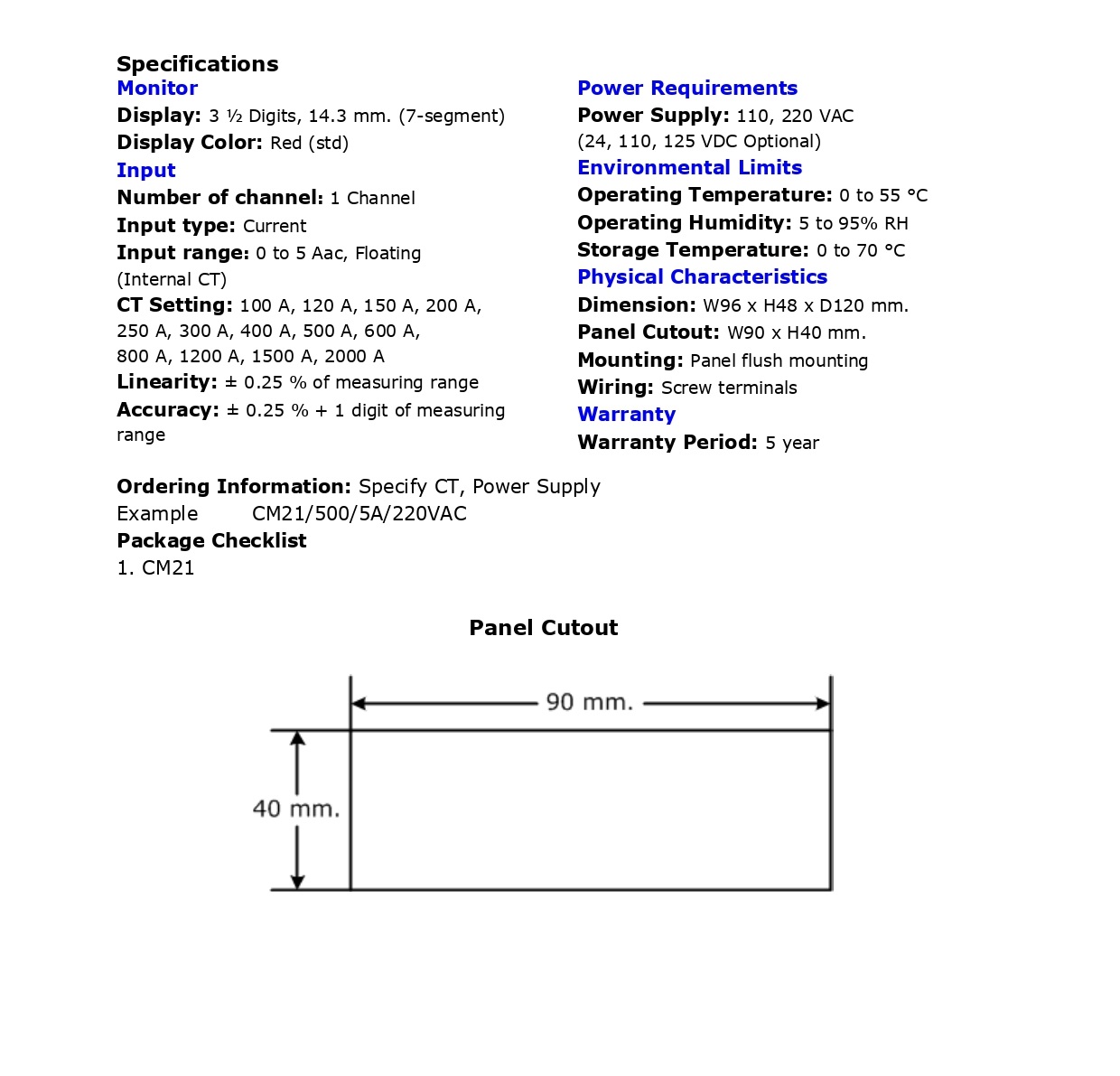 | ไฮไลท์ | AC Amp. Meter (Single Phase) CM21 เป็น AC Amp. Meter แสดงค่ากระแสไฟ AC แบบตัวเลข Digital CM21 สามารถตั้งให้ใช้กับ CT ได้หลายขนาด ______________________________________________________ Product : - Display AC Current - 3 ½ digits LED display - Selectable CT Ratio ______________________________________________________ >>> หมายเหตุ : • ราคารวมภาษีมูลค่าเพิ่มแล้ว • กรณีมีสินค้าสต๊อกระยะจัดส่งสินค้าภายใน 4-7 วันทำการ • กรณีสินค้าหมดระยะจัดส่งสินค้าภายใน 3-4 สัปดาห์ • ฟรีค่าบริการจัดส่งสินค้า โดยบริษัทขนส่งเอกชน เช่น ปณ. ด่วน EMS, KEX Express, Flash Express เท่านั้น • สามารถเช็คสต๊อกสินค้าก่อนทำการสั่งซื้อได้ที่ @Line ID : kdnautomation • ลูกค้าตรวจสอบ Spec สินค้าก่อนทำการสั่งซื้อทุกครั้ง กรณีสั่งซื้อแล้วไม่รับเปลี่ยน-คืน ______________________________________________________ >>> ติดต่อสอบถามข้อมูลเพิ่มเติม : • Line Official : kdnautomation • E-Mail: kdnautomation@gmail.com • Tel : 082-550-3096, 02-023-3038 • Website : www.kdnautomation.co.th • เวลาทำการบริษัท วันจันทร์ - วันศุกร์ เวลา 08.00 - 17.00 น. ( หยุดวันนักขัตฤกษ์ ) ______________________________________________________ >>> บริการติดตั้ง : • ทางบริษัทจำหน่ายอุปกรณ์อิเล็กทรอนิกส์ ออกแบบ ติดตั้งและซ่อมแซม ปรับปรุงเครื่องจักรในโรงงานอุตสาหกรรม รวมถึงการให้บริการเขียนโปรแกรม และพัฒนาระบบควบคุมอัตโนมัติแบบครบวงจร ทั้งนี้ลูกค้าสามารถส่งรายละเอียด มาได้ที่ E-mail : kdnautomation@gmail.com เพื่อประเมินราคา |