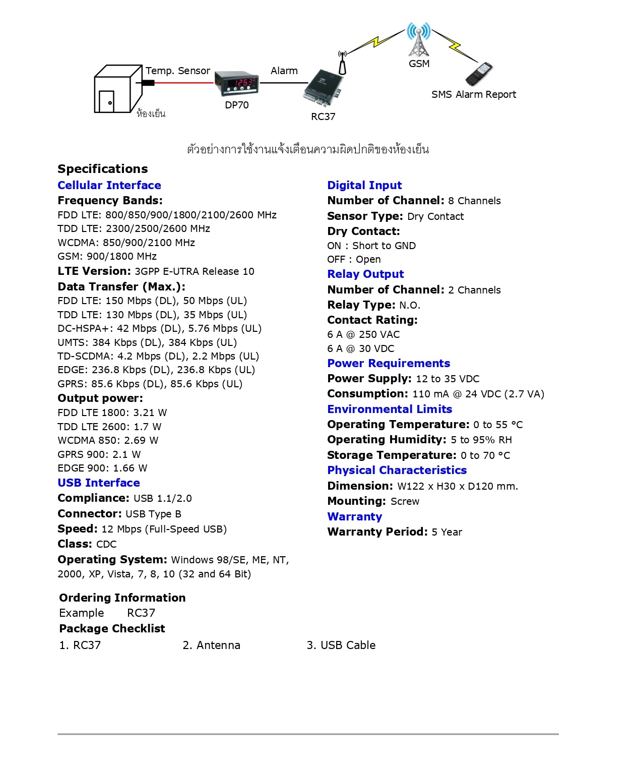 | ไฮไลท์ | Wireless RS485/422 RC36 เป็นอุปกรณ์ที่ใช้สำหรับเชื่อมต่อสัญญาณ RS485/422 ผ่านทางสัญญาณวิทยุ ทำให้ประหยัดค่าใช้จ่ายในการติดตั้งโดยไม่ต้องเดินสายสัญญาณ ______________________________________________________ Product : - 8 Alarm Digital inputs - Programmable SMS Message - Buffer 32 Alarm (Network Fail 15 Minute) - 2 Digital Output Controlled by SMS - Built-in 3G Modem (UMTS/HSDPA) ______________________________________________________ >>> หมายเหตุ : • ราคารวมภาษีมูลค่าเพิ่มแล้ว • กรณีมีสินค้าสต๊อกระยะจัดส่งสินค้าภายใน 4-7 วันทำการ • กรณีสินค้าหมดระยะจัดส่งสินค้าภายใน 3-4 สัปดาห์ • ฟรีค่าบริการจัดส่งสินค้า โดยบริษัทขนส่งเอกชน เช่น ปณ. ด่วน EMS, KEX Express, Flash Express เท่านั้น • สามารถเช็คสต๊อกสินค้าก่อนทำการสั่งซื้อได้ที่ @Line ID : kdnautomation • ลูกค้าตรวจสอบ Spec สินค้าก่อนทำการสั่งซื้อทุกครั้ง กรณีสั่งซื้อแล้วไม่รับเปลี่ยน-คืน ______________________________________________________ >>> ติดต่อสอบถามข้อมูลเพิ่มเติม : • Line Official : kdnautomation • E-Mail: kdnautomation@gmail.com • Tel : 082-550-3096, 02-023-3038 • Website : www.kdnautomation.co.th • เวลาทำการบริษัท วันจันทร์ - วันศุกร์ เวลา 08.00 - 17.00 น. ( หยุดวันนักขัตฤกษ์ ) ______________________________________________________ >>> บริการติดตั้ง : • ทางบริษัทจำหน่ายอุปกรณ์อิเล็กทรอนิกส์ ออกแบบ ติดตั้งและซ่อมแซม ปรับปรุงเครื่องจักรในโรงงานอุตสาหกรรม รวมถึงการให้บริการเขียนโปรแกรม และพัฒนาระบบควบคุมอัตโนมัติแบบครบวงจร ทั้งนี้ลูกค้าสามารถส่งรายละเอียด มาได้ที่ E-mail : kdnautomation@gmail.com เพื่อประเมินราคา |