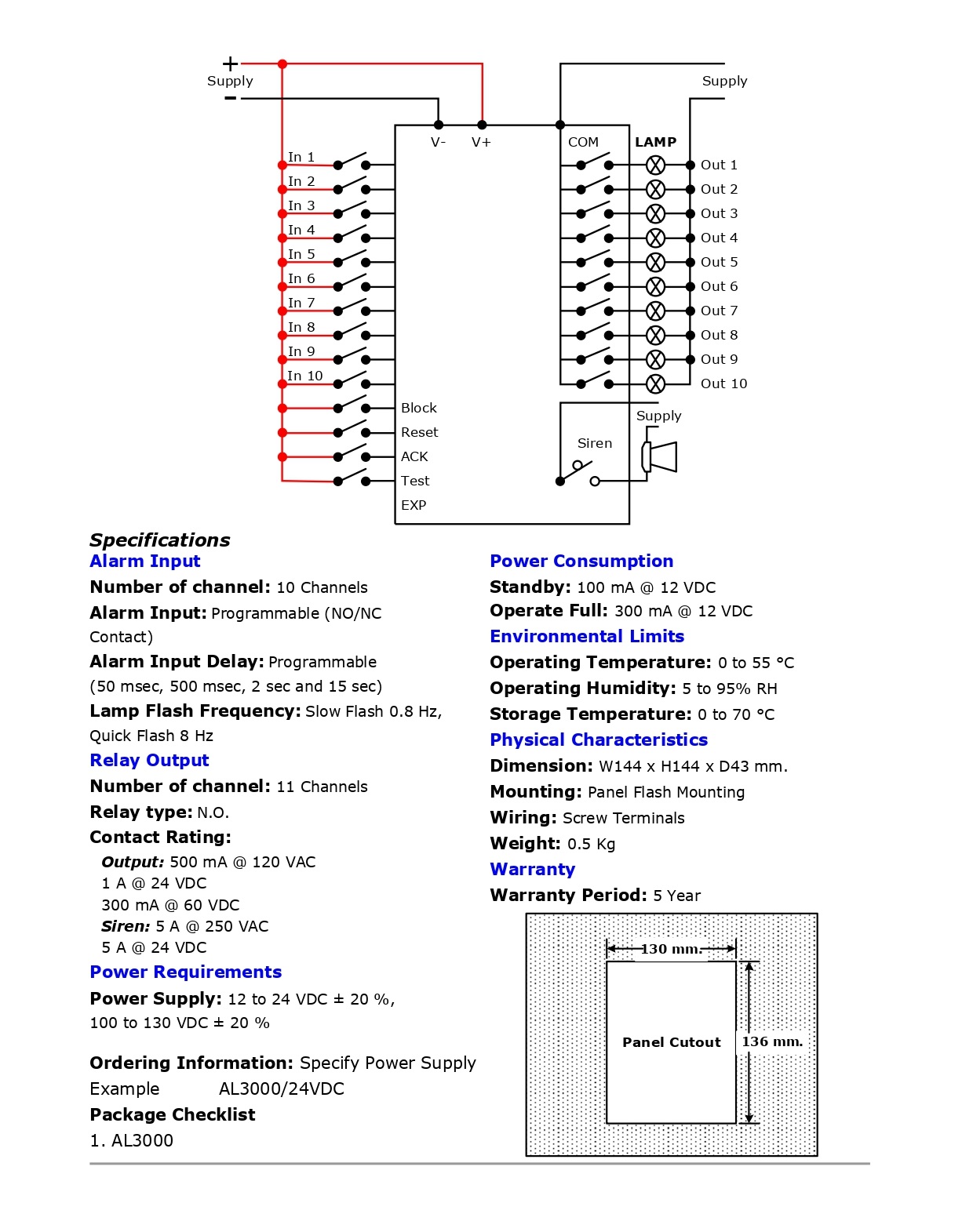 | ไฮไลท์ | Alarm Annunciator AL3000 เป็นอุปกรณ์ตรวจจับ, แสดงผล และส่งสัญญาณเตือนเมื่อเกิด Alarm ในระบบ โดยทั่วไปแล้วในระบบควบคุมต่างๆจะมีการตรวจสอบค่าวัดต่างๆ เช่น อุณหภูมิ ความดัน ความเร็วของมอเตอร์ เป็นต้น เพื่อป้องกันความเสียหายที่จะเกิดขึ้นในระบบ ถ้าเกิดความผิดปกติขึ้นระบบตรวจสอบจะแจ้งเตือนให้ผู้ดูแลระบบทราบเพื่อที่จะทำการแก้ไขต่อไป ในบางครั้ง Alarm ที่เกิดขึ้นที่จุดหนึ่งส่งผลให้จุดอื่นๆ เกิด Alarm ตามมาในเวลาที่ใกล้เคียงกัน เป็นการยากที่ผู้ดูแลจะตรวจหาต้นเหตุของความผิดพลาดที่เกิดขึ้น ด้วยเหตุนี้ AL3000 จึงถูกออกแบบให้ทำงานโดยเมื่อเกิด Alarm ขึ้น LED Alarm ของ Channel ที่เกิด Alarm เป็น Channel แรก จะกระพริบเร็ว (Quick Flash) ส่วน LED Alarm ของ Channel อื่นที่เกิด Alarm ตามมาจะกระพริบช้า (Slow Flash) และ Siren Relay จะ ON เมื่อเกิด Alarm ช่องใดช่องหนึ่งเกิดขึ้นและจะ OFF เมื่อกดปุ่ม “ACK” ที่เกิด Alarm หลอด LED Alarm จะติดสว่างค้างไว้จนกระทั่ง Alarm ถูกแก้ไขแล้วกดปุ่ม “RESET” LED Alarm จึงจะดับ ในกรณีที่ระบบ Alarm ต้องใช้ Input มากกว่า 10 Channel AL3000 สามารถต่อพ่วงกันเพื่อขยายจำนวน Input Channel ได้ ______________________________________________________ Product : - 10 Channels Input - LED Display - Siren Relay Output - First Alarm Detect - Expandable Input Channel ______________________________________________________ >>> หมายเหตุ : • ราคารวมภาษีมูลค่าเพิ่มแล้ว • กรณีมีสินค้าสต๊อกระยะจัดส่งสินค้าภายใน 4-7 วันทำการ • กรณีสินค้าหมดระยะจัดส่งสินค้าภายใน 3-4 สัปดาห์ • ฟรีค่าบริการจัดส่งสินค้า โดยบริษัทขนส่งเอกชน เช่น ปณ. ด่วน EMS, KEX Express, Flash Express เท่านั้น • สามารถเช็คสต๊อกสินค้าก่อนทำการสั่งซื้อได้ที่ @Line ID : kdnautomation • ลูกค้าตรวจสอบ Spec สินค้าก่อนทำการสั่งซื้อทุกครั้ง กรณีสั่งซื้อแล้วไม่รับเปลี่ยน-คืน ______________________________________________________ >>> ติดต่อสอบถามข้อมูลเพิ่มเติม : • Line Official : kdnautomation • E-Mail: kdnautomation@gmail.com • Tel : 082-550-3096, 02-023-3038 • Website : www.kdnautomation.co.th • เวลาทำการบริษัท วันจันทร์ - วันศุกร์ เวลา 08.00 - 17.00 น. ( หยุดวันนักขัตฤกษ์ ) ______________________________________________________ >>> บริการติดตั้ง : • ทางบริษัทจำหน่ายอุปกรณ์อิเล็กทรอนิกส์ ออกแบบ ติดตั้งและซ่อมแซม ปรับปรุงเครื่องจักรในโรงงานอุตสาหกรรม รวมถึงการให้บริการเขียนโปรแกรม และพัฒนาระบบควบคุมอัตโนมัติแบบครบวงจร ทั้งนี้ลูกค้าสามารถส่งรายละเอียด มาได้ที่ E-mail : kdnautomation@gmail.com เพื่อประเมินราคา |