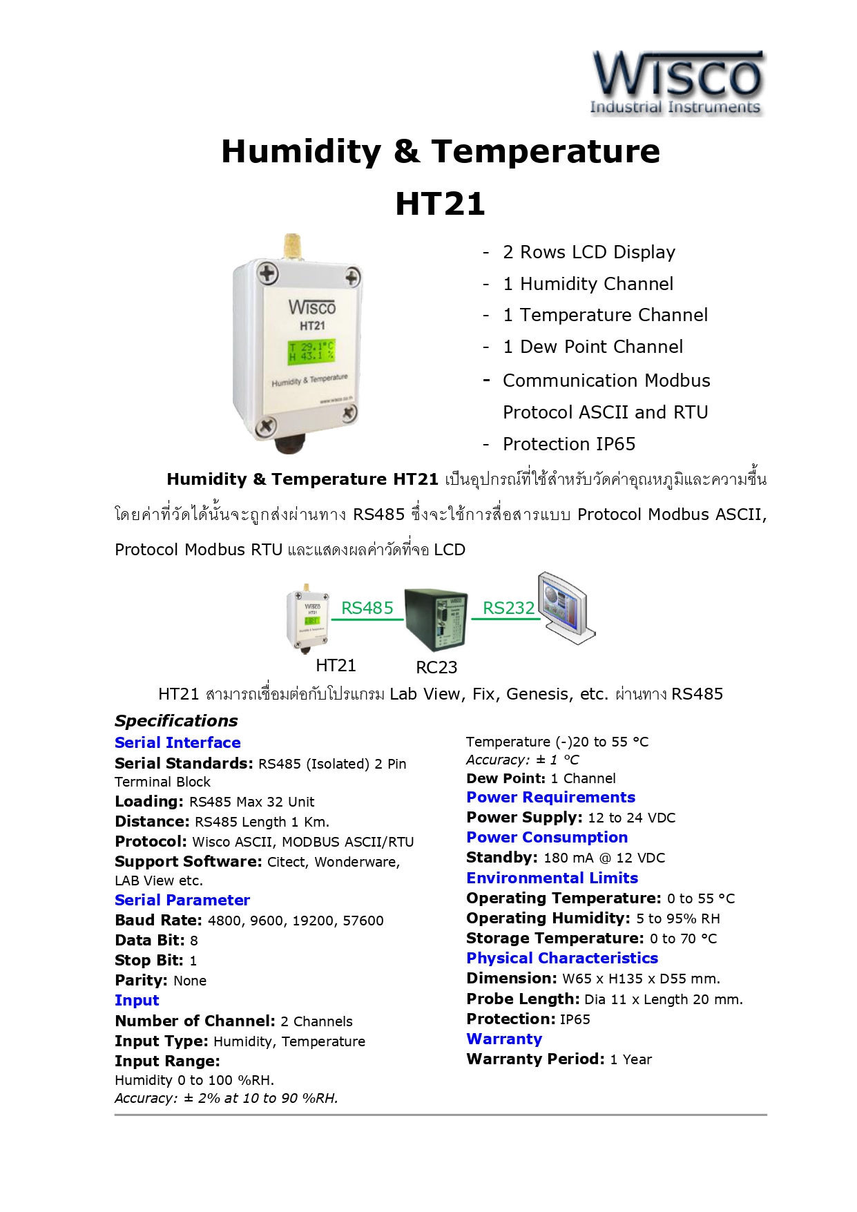 | ไฮไลท์ | Humidity & Temperature HT21 เป็นอุปกรณ์ที่ใช้สำหรับวัดค่าอุณหภูมิและความชื้น โดยค่าที่วัดได้นั้นจะถูกส่งผ่านทาง RS485 ซึ่งจะใช้การสื่อสารแบบ Protocol Modbus ASCII, Protocol Modbus RTU และแสดงผลค่าวัดที่จอ LCD ______________________________________________________ Product : - 2 Rows LCD Display - 1 Humidity Channel - 1 Temperature Channel - 1 Dew Point Channel - Communication Modbus Protocol ASCII and RTU - Protection IP65 ______________________________________________________ >>> หมายเหตุ : • ราคารวมภาษีมูลค่าเพิ่มแล้ว • กรณีมีสินค้าสต๊อกระยะจัดส่งสินค้าภายใน 4-7 วันทำการ • กรณีสินค้าหมดระยะจัดส่งสินค้าภายใน 3-4 สัปดาห์ • ฟรีค่าบริการจัดส่งสินค้า โดยบริษัทขนส่งเอกชน เช่น ปณ. ด่วน EMS, KEX Express, Flash Express เท่านั้น • สามารถเช็คสต๊อกสินค้าก่อนทำการสั่งซื้อได้ที่ @Line ID : kdnautomation • ลูกค้าตรวจสอบ Spec สินค้าก่อนทำการสั่งซื้อทุกครั้ง กรณีสั่งซื้อแล้วไม่รับเปลี่ยน-คืน ______________________________________________________ >>> ติดต่อสอบถามข้อมูลเพิ่มเติม : • Line Official : kdnautomation • E-Mail: kdnautomation@gmail.com • Tel : 082-550-3096, 02-023-3038 • Website : www.kdnautomation.co.th • เวลาทำการบริษัท วันจันทร์ - วันศุกร์ เวลา 08.00 - 17.00 น. ( หยุดวันนักขัตฤกษ์ ) ______________________________________________________ >>> บริการติดตั้ง : • ทางบริษัทจำหน่ายอุปกรณ์อิเล็กทรอนิกส์ ออกแบบ ติดตั้งและซ่อมแซม ปรับปรุงเครื่องจักรในโรงงานอุตสาหกรรม รวมถึงการให้บริการเขียนโปรแกรม และพัฒนาระบบควบคุมอัตโนมัติแบบครบวงจร ทั้งนี้ลูกค้าสามารถส่งรายละเอียด มาได้ที่ E-mail : kdnautomation@gmail.com เพื่อประเมินราคา |